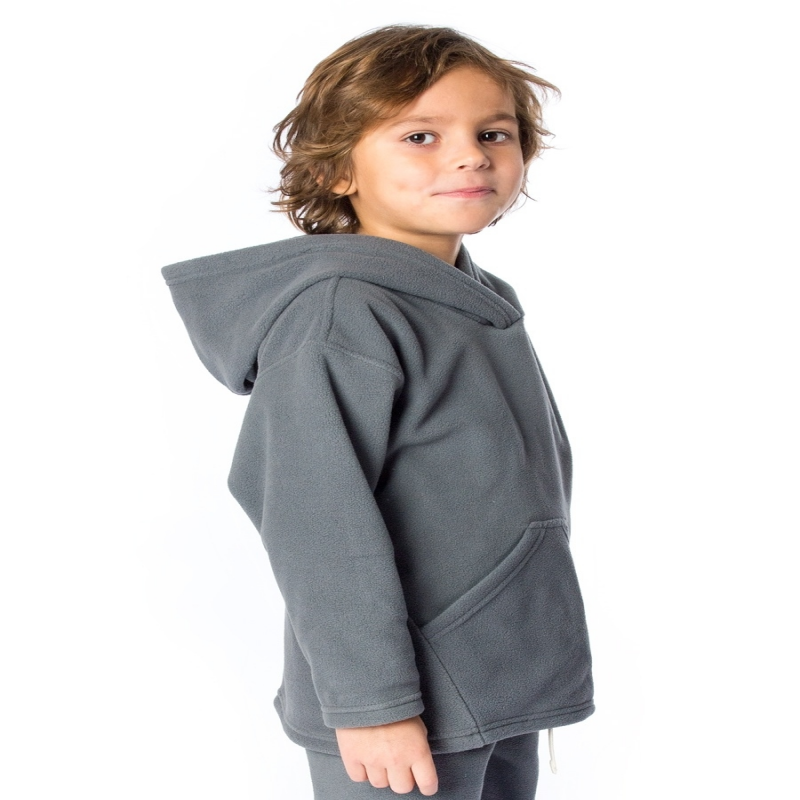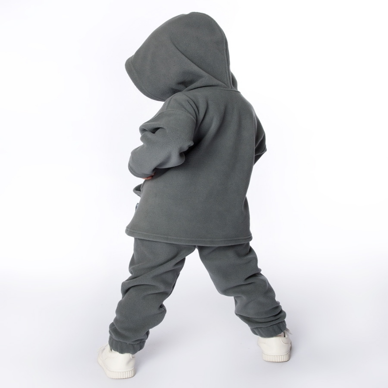 Felpa in pile per bambini oversize con cappuccio e tasca a marsupio. La soluzione ideale per un sottogiacca in inverno sotto tuta, giacca o gilet. Il pile morbido e spesso riscalda e rimane asciutto anche durante i movimenti più attivi del bambino, espellendo efficacemente l'umidità e il sudore, mantenendo asciutto e caldo.